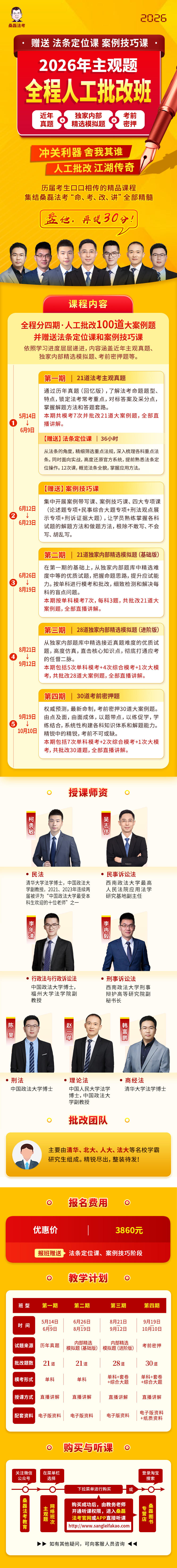 [套餐]2026主观全程人工批改班 2026主观全程人工批改班 讲师: 李年清 吴志伟 柯勇敏 李冉毅 韩富鹏 陈昊 包含: 0门课程 套餐价格: ¥3860.00 原价: ¥3860.00 立即节省: ¥ 购买套餐